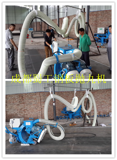 在抛丸轮的带动下,丸料结果机械加速,以很高的速度冲击到需要处理的表面。打击表面后反弹到反弹高压室,并进入到气流分离系统中,在这里灰尘和其他杂质被分离出来,干净的丸料和很少的粉尘才会回到丸料储存斗,进入抛丸轮被重复使用。完成整套流程。蜀工移动式抛丸清理系统,适合于干燥、坚硬、无水气的水平表面,例如:混凝土表面、钢板表面、甲板表面、地坪地面等,不适合于其他用途。制造商没有义务承担由于用在其他不当用途或者不当使用造成的损害。
