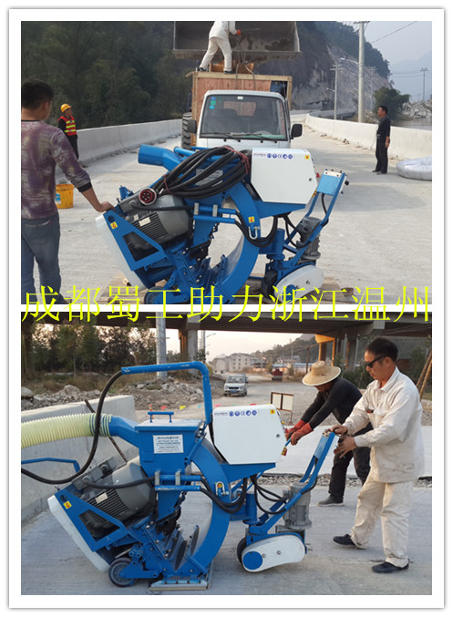 成都蜀工机械制造有限公司生产的重型路面抛丸机2-550机型就被使用在温州的桥梁建设中,在温州的桥梁建设起了非常重要的作用。重型路面抛丸机2-550能把把丸料以很高的速度和一定的角度抛射到工作表皮上,使路面的表面粗糙并有去除残留物的效果。同时除尘器产生的负压会将丸料和清理的杂质粉尘等回收经过气流清理后,完好的丸料会自动循环使用,而杂质和粉尘也会落入收尘箱中。蜀工重型路面抛丸机2-550抛丸机能够一次将混泥土表面的浮浆、杂质清理清除并且可以